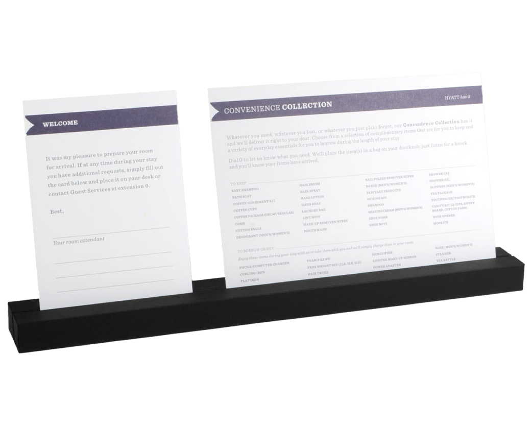 Note Pad Holders, Note Paper Holders and Trays, and Weighted Styles for Hotel Guest Rooms