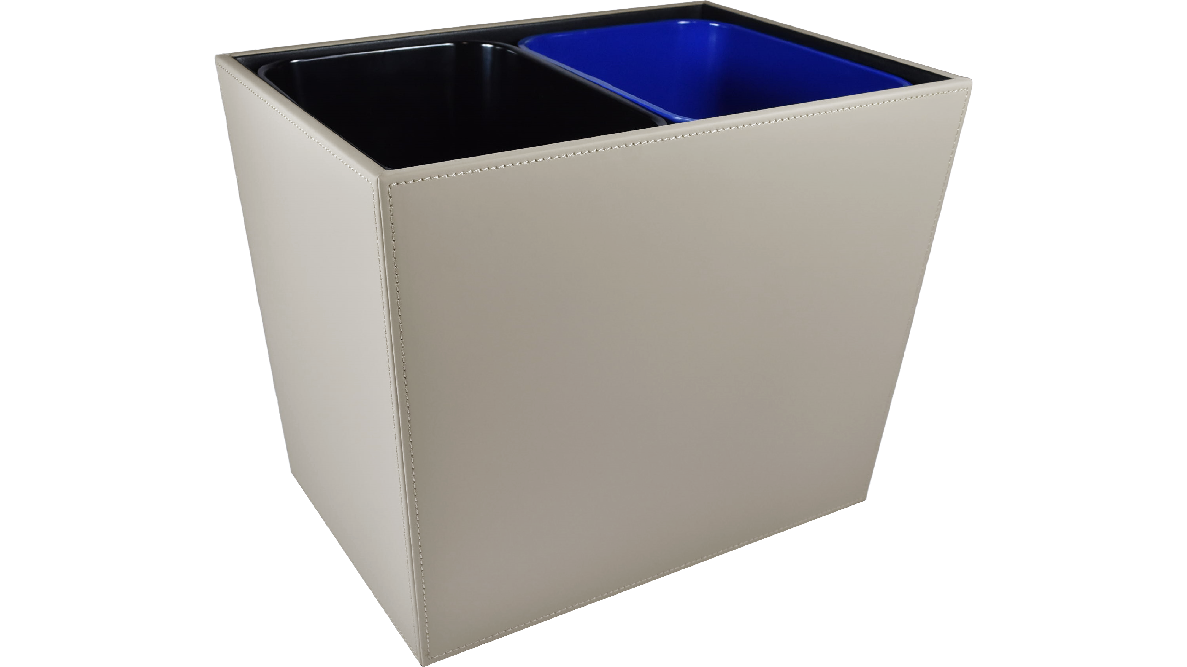 Our Dual Chamber Hotel Wastebaskets make it easy to sort your trash and recyclables into one convenient space. These Wastebaskets are stylish yet sturdy and include two heavy-duty 8-quart resin liners. The liners are removable for easy clean-up. We can also custom make these Wastebaskets to match a desired color or material.
