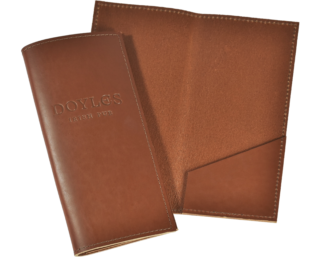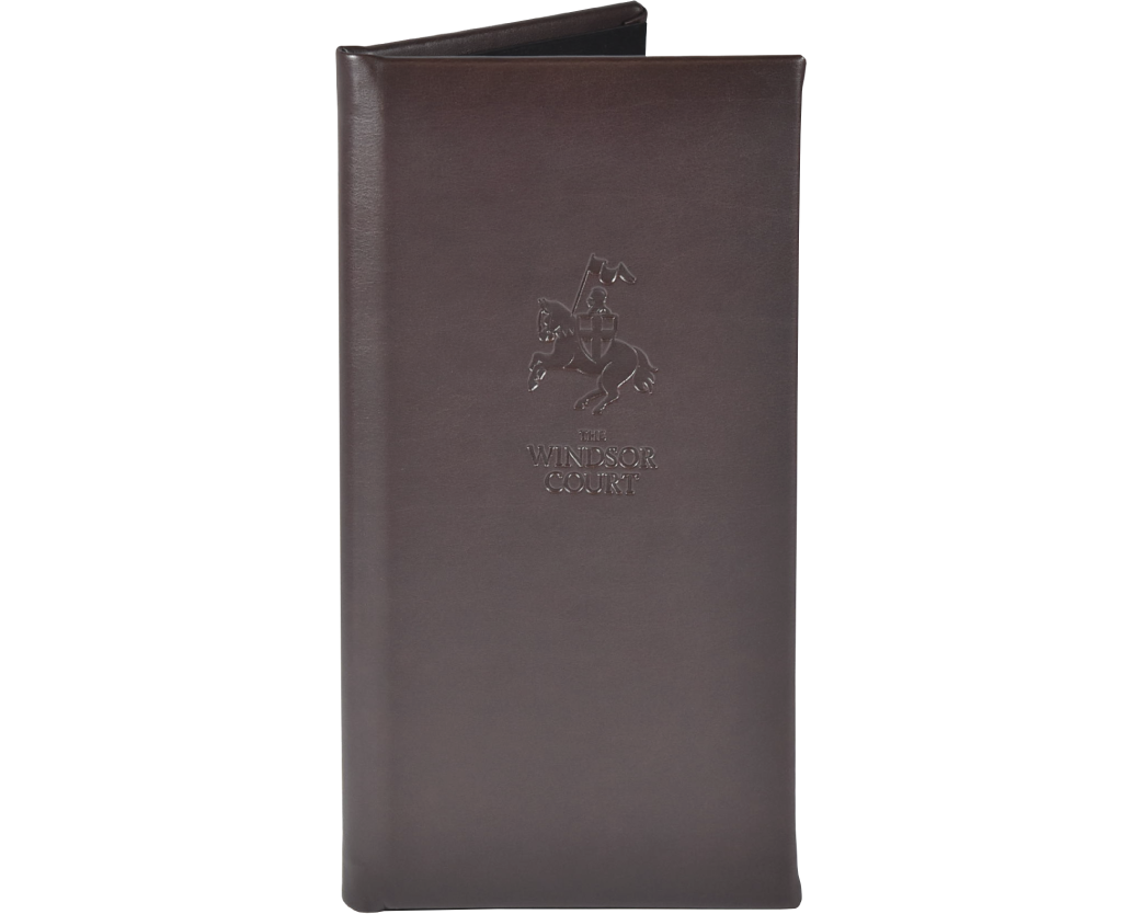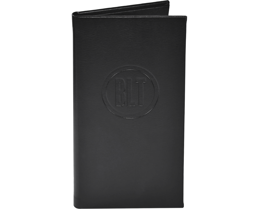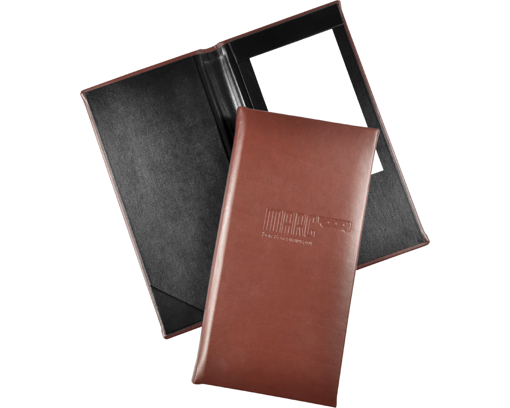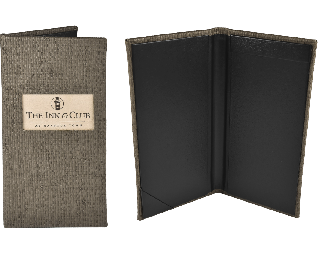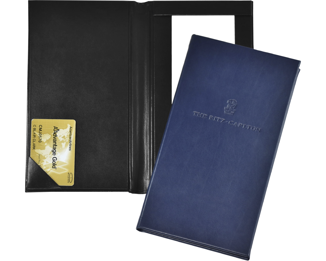 Our Bi-Fold Check Presenters use a band on the top right to secure the check. The lower left has an angled corner pocket to hold the credit card. The spine accommodates and locks the pen when closed. Ensure your guest leave on a positive note with a custom check presenter designed with the perfect balance of functionality and class.