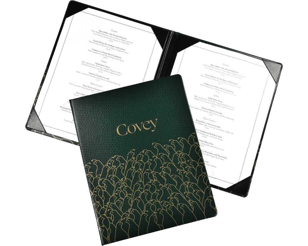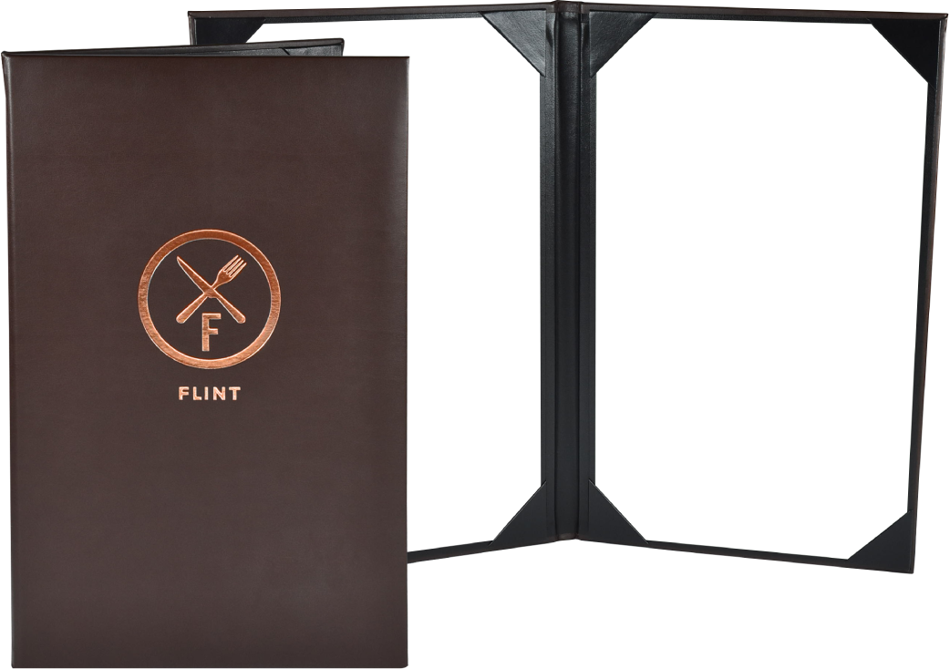 Our Two-fold Menu Covers are our most popular design, commonly used to display lunch and dinner menus.